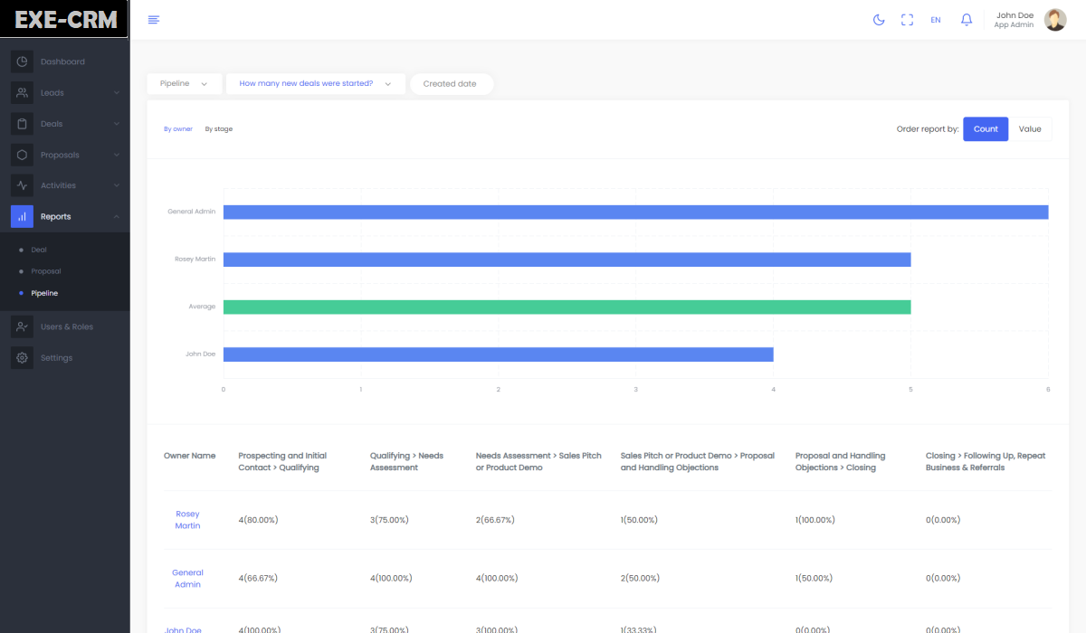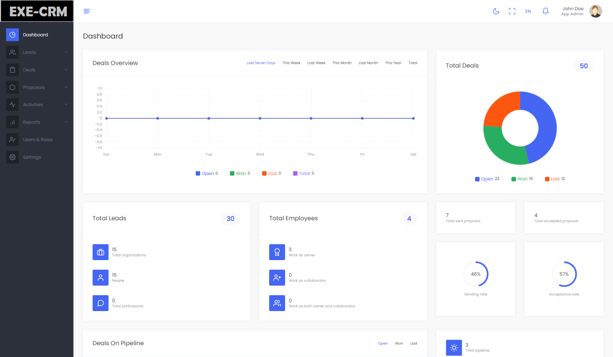 - Track all the performance in Reports according to Deals, Proposal And Pipeline view.